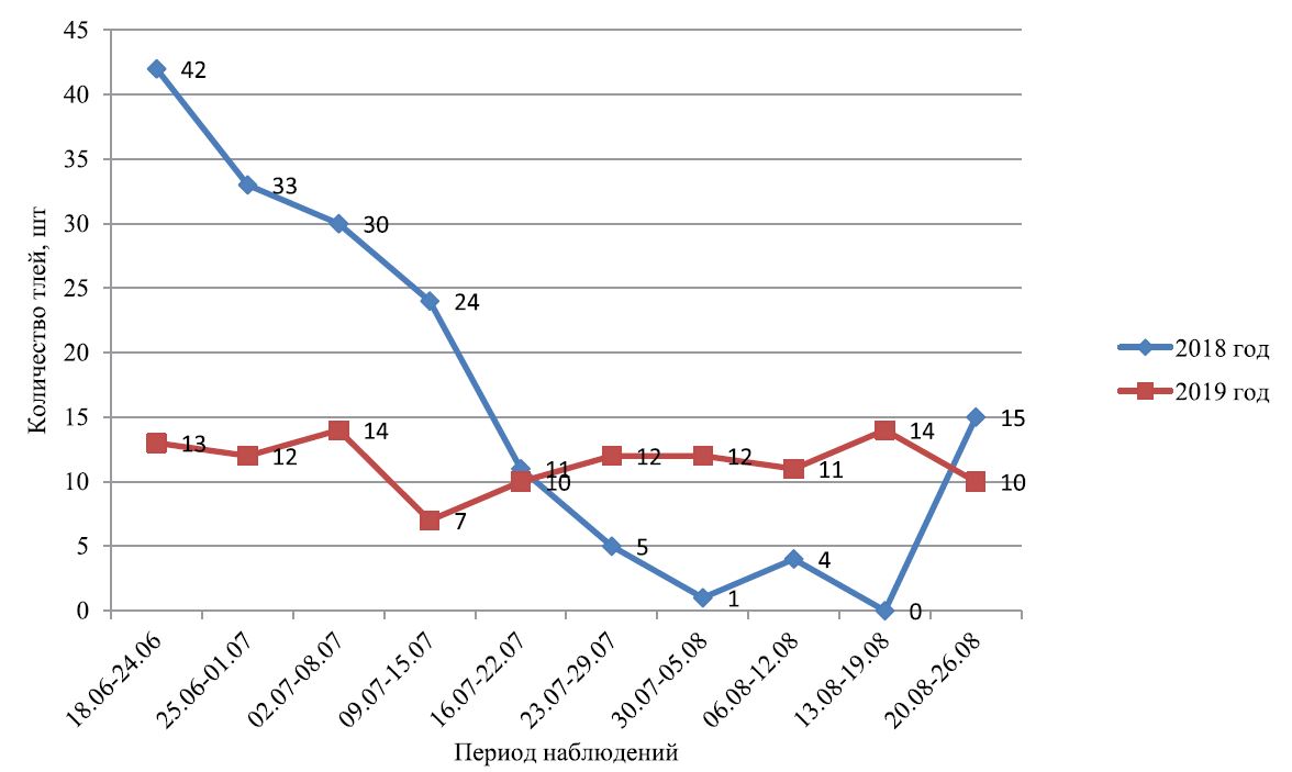 Fig. Change in the total number of winged aphids on potato plantings in the south of the Arkhangelsk region