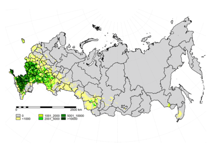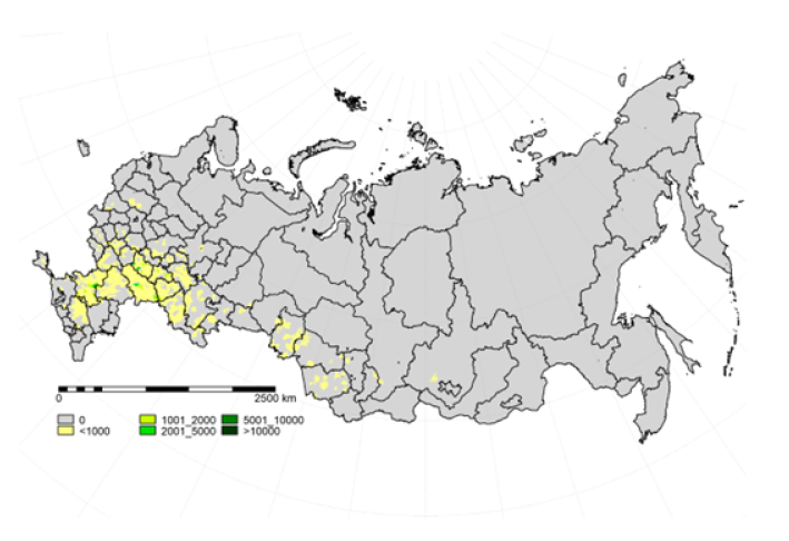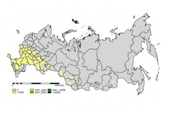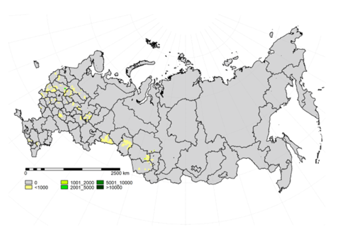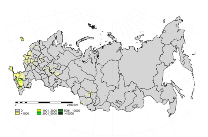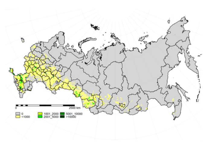 We used a vector map of administrative boundaries of Russia (analogue of the GAUL database level 3 (The Global Administrative Unit Layers dataset, implemented by FAO within the CountrySTAT and Agricultural Market Information System (AMIS) projects), which were digitized from topographic maps of scale 1:50000 [17].