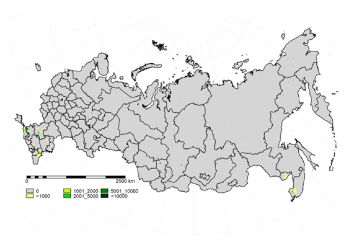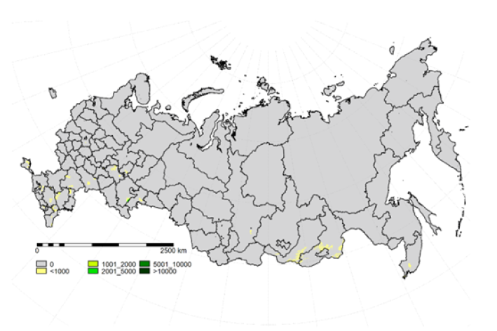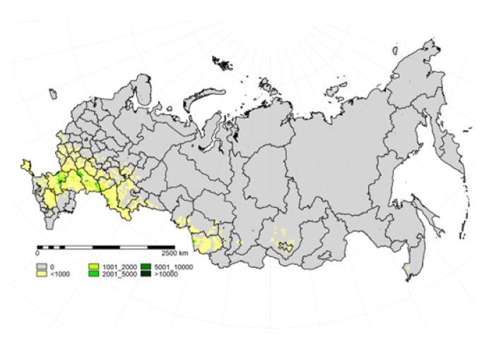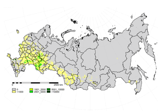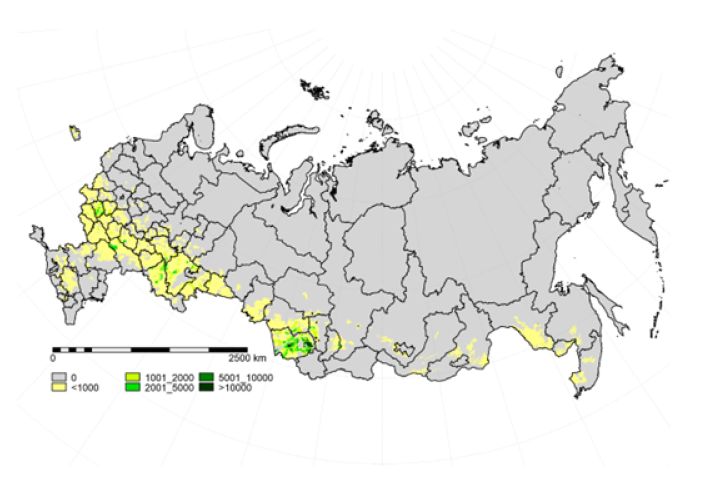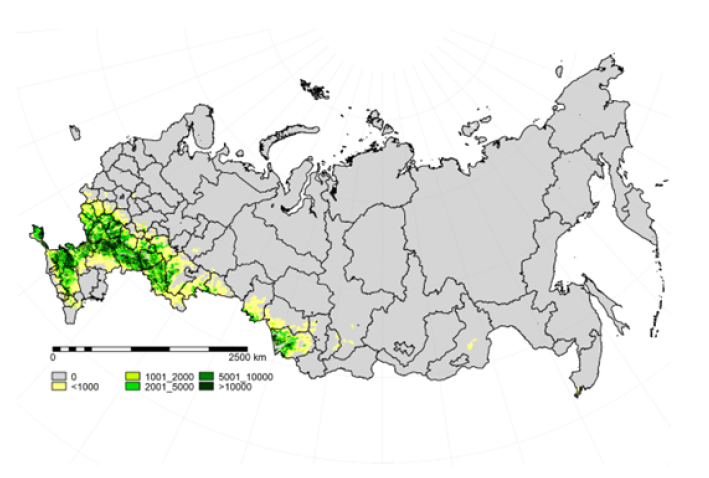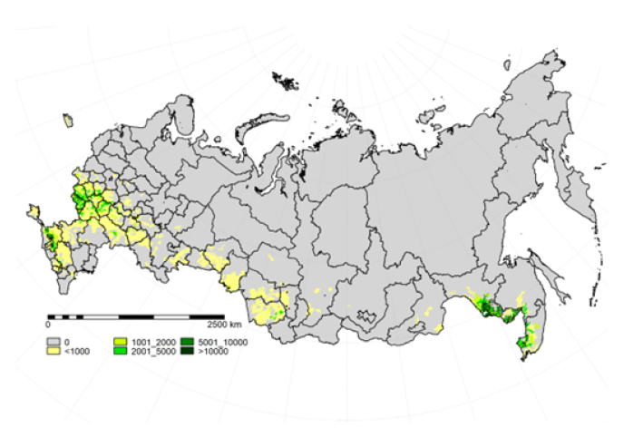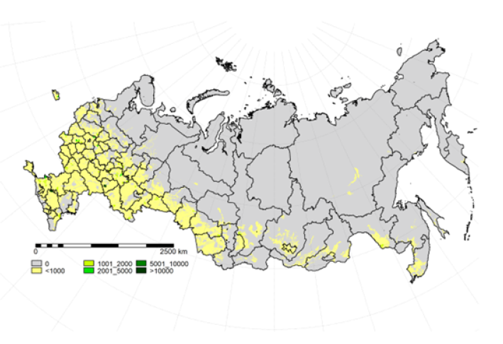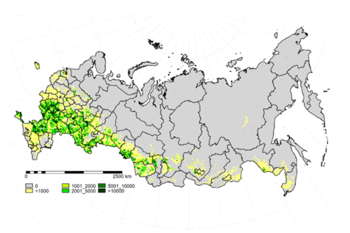 We also consider the obtained maps as a basis for satellite detection of crops and improvement of satellite monitoring methods. To improve the quality of crop masks derived from satellite data, these masks can be combined with our crop distribution maps, and those pixels that lie outside the crop distribution ranges indicated on the map can be considered erroneous.