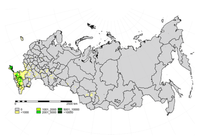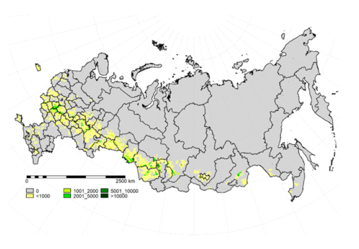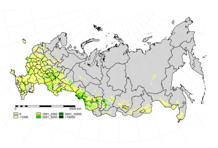 We also consider the obtained maps as a basis for satellite detection of crops and improvement of satellite monitoring methods. To improve the quality of crop masks derived from satellite data, these masks can be combined with our crop distribution maps, and those pixels that lie outside the crop distribution ranges indicated on the map can be considered erroneous.