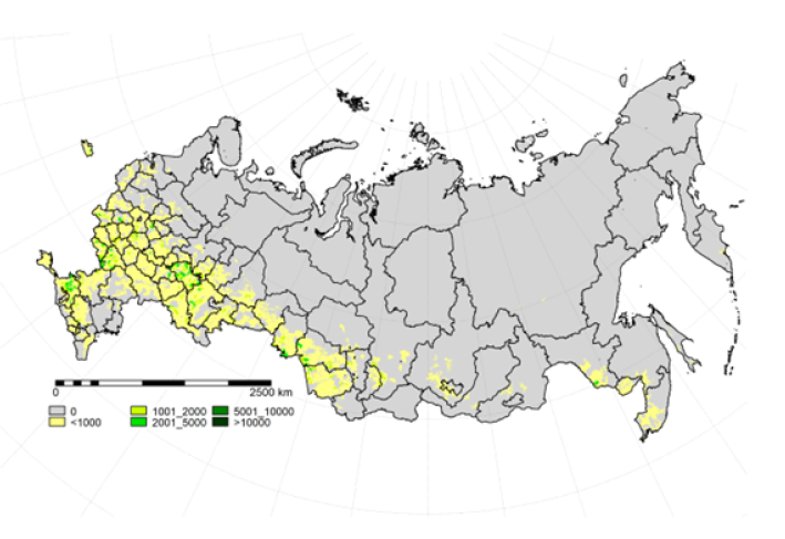 We used a vector map of administrative boundaries of Russia (analogue of the GAUL database level 3 (The Global Administrative Unit Layers dataset, implemented by FAO within the CountrySTAT and Agricultural Market Information System (AMIS) projects), which were digitized from topographic maps of scale 1:50000 [17].