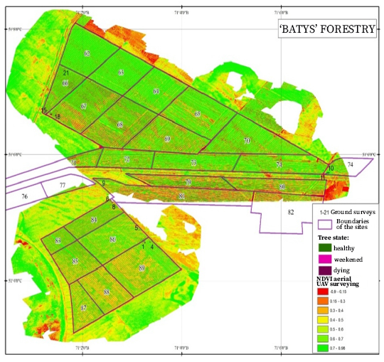 Fig. 1. Vegetation indices NDVI of ‘Batys’ forestry, UAV data