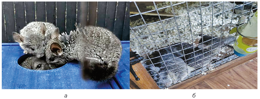 Fig. 1. Conditions for keeping chinchillas in the control group (a) and experimental group (б)