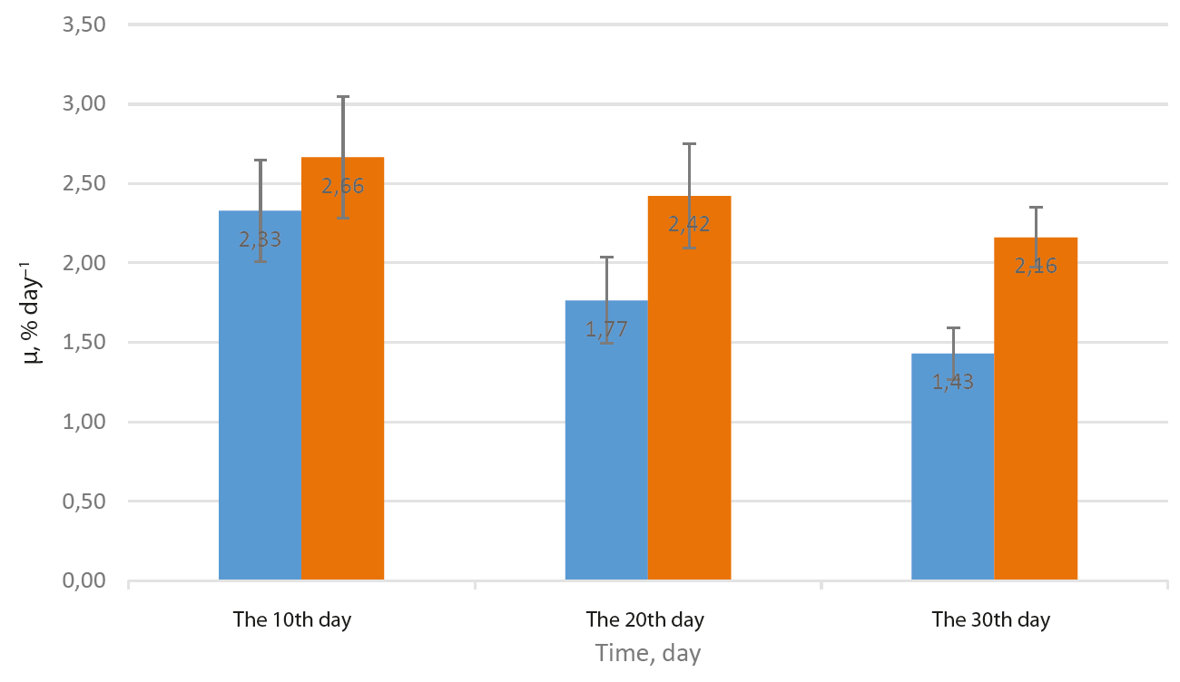 Fig. 6. Dynamics of relative growth rate of chinchillas, % day‑1
