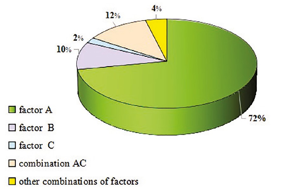 Fig. 3. The share of influence of the studied factors on yield of spring wheat