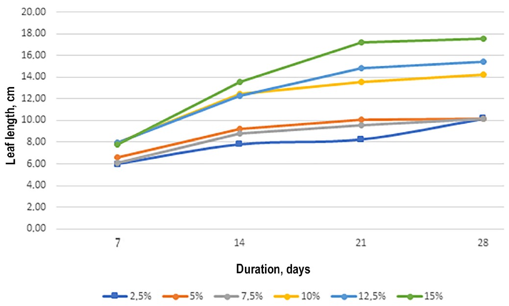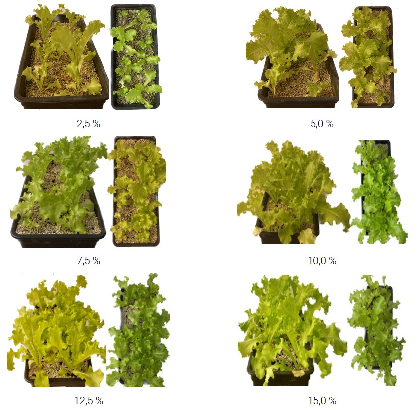 Fig. 4. Growth and development of lettuce plants on light soil with addition of biohumus in different concentrations