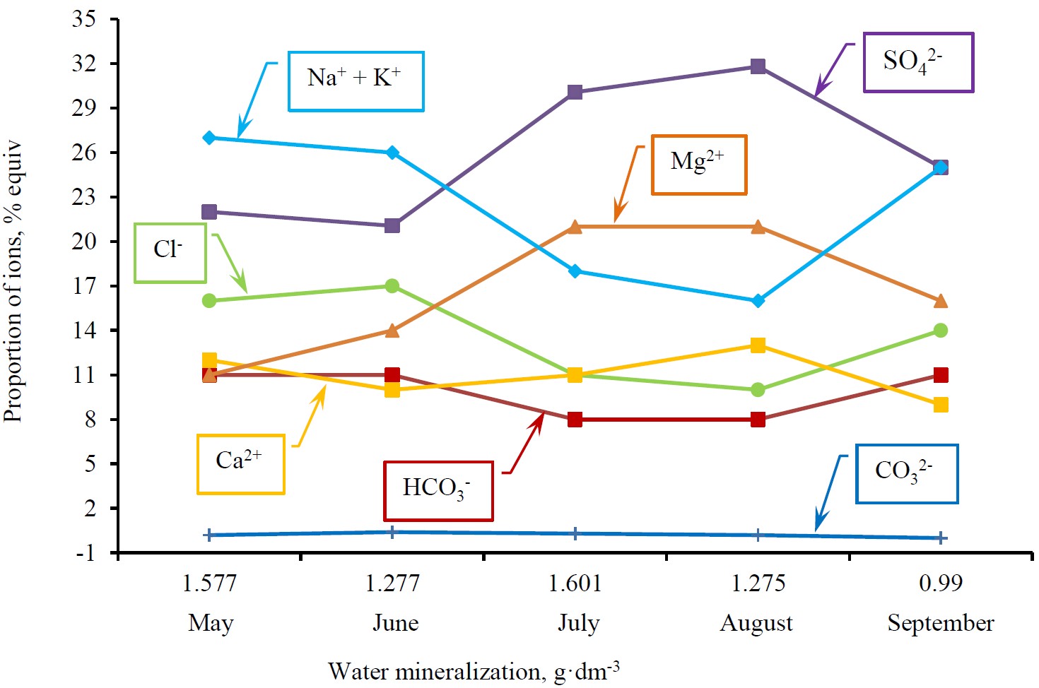 Fig. 1. Dynamics of water-salt composition of water
