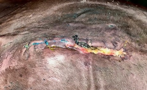 Fig. 13. Condition of wounds and suture dehiscence on day 7