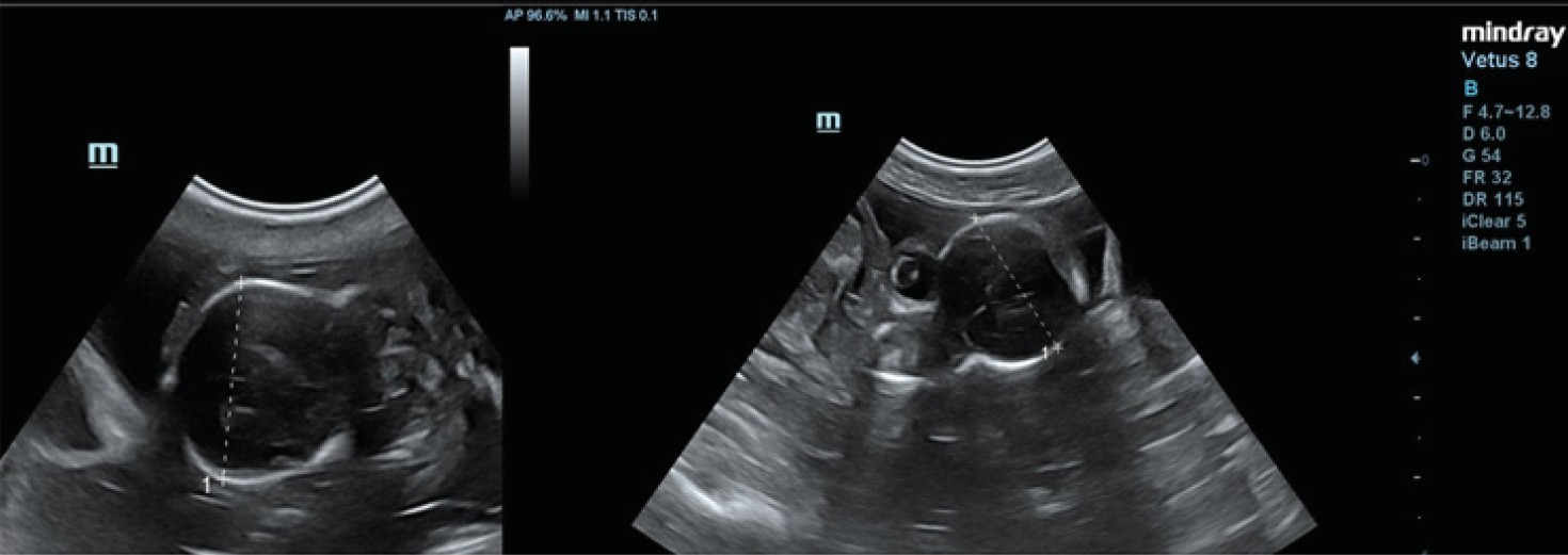 Fig. 1. Ultrasound image reflecting the biparietal diameter of a French bulldog on the 58th day of pregnancy