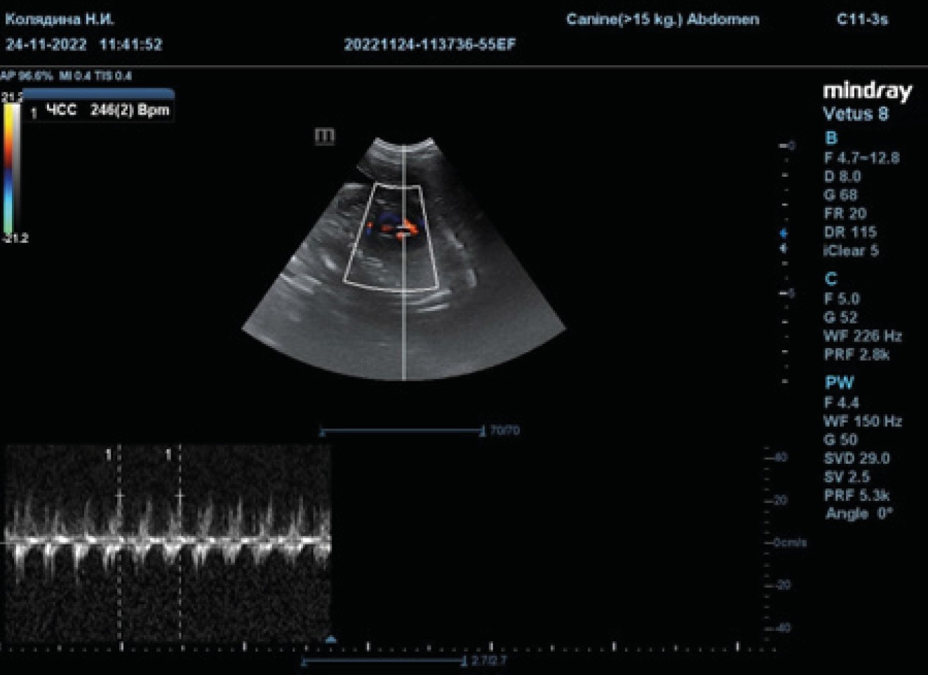 Source: compiled by N.I. Kolyadina, A.V. Shumeyko on the Mindray Vetus 8 Ultrasound Machine.