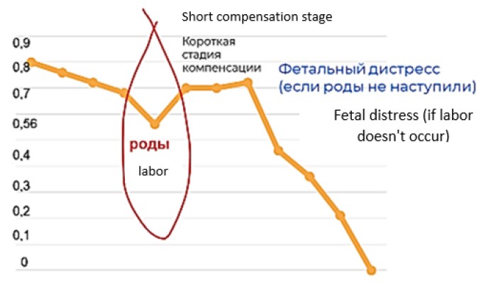 Fig. 9. Diagram of changes in the umbilical artery resistance index at the end of pregnancy