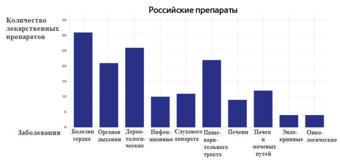Fig. 3. Russian drugs for the treatment of diseases of the systems and organs in dogs