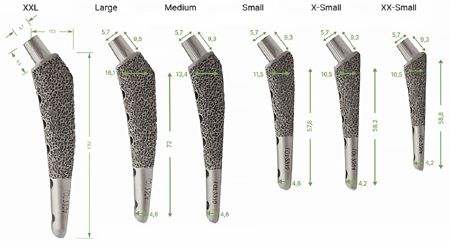Fig. 3. Size range of femoral components of the Russian V@art system