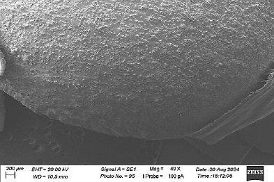 Рис. 7. Микрофото участка дистальной (концевой) части ножки импланта. Сканирующая электронная микроскопия. Увеличение: 49×. Отсутствие костной ткани