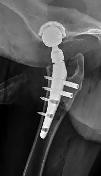 Fig. 9. Osseointegration of the stem and attachment to the medial cortex of the femur on the 60th day after surgery (patient from Fig. 8)